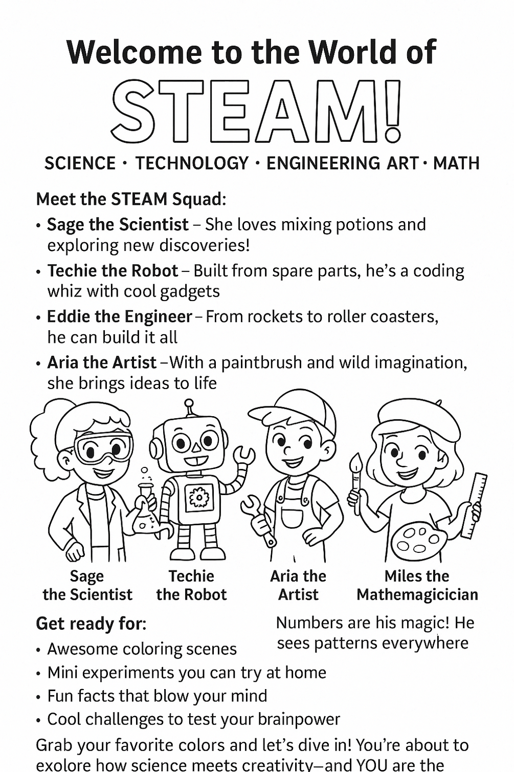 - Awesome STEAM-themed coloring pages
